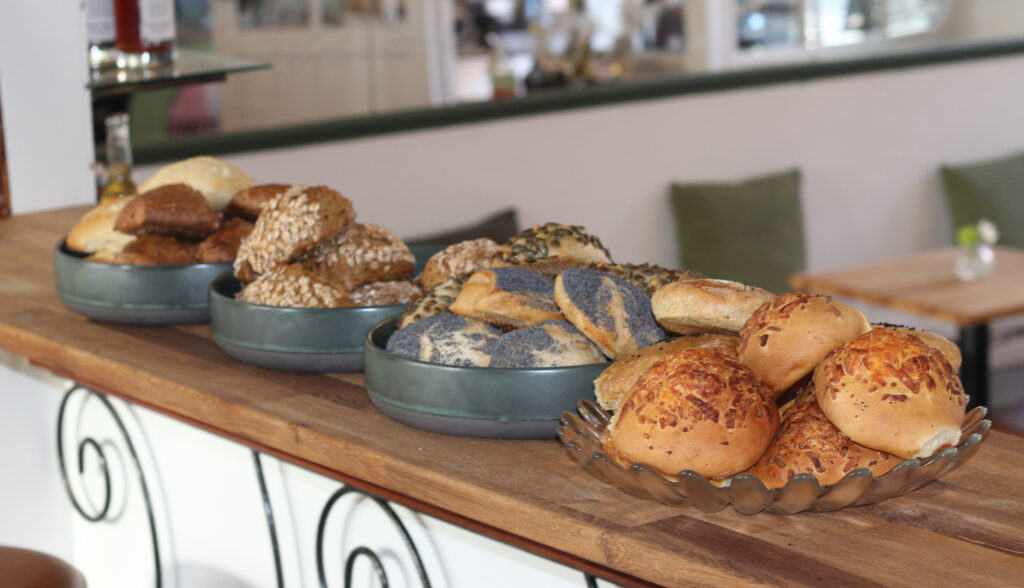Brødet og kagerne er hjemmebagt helt fra bunden, og udvalget udskiftes løbende i henhold til årstiderne – altid med fokus på finessen og detaljen.